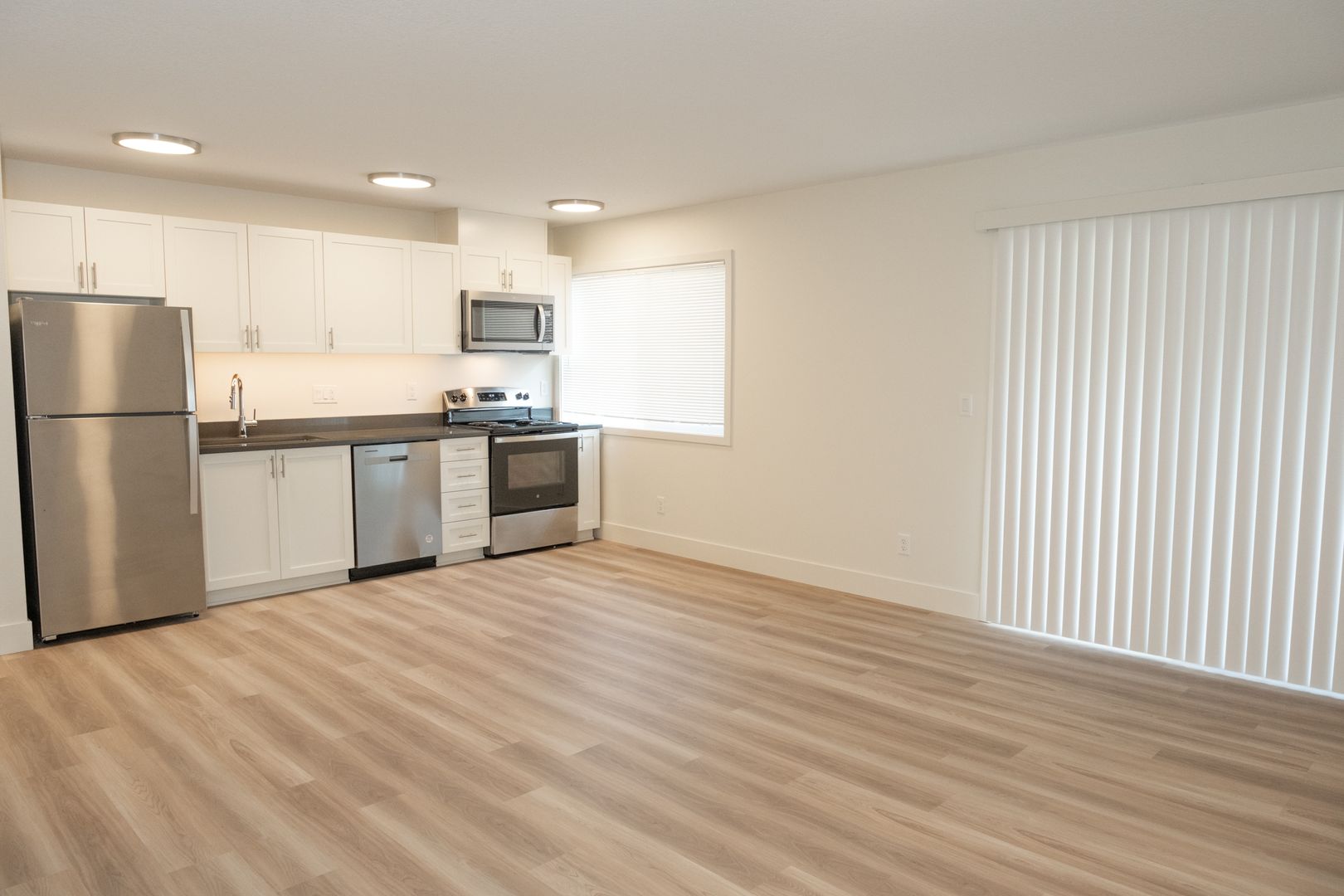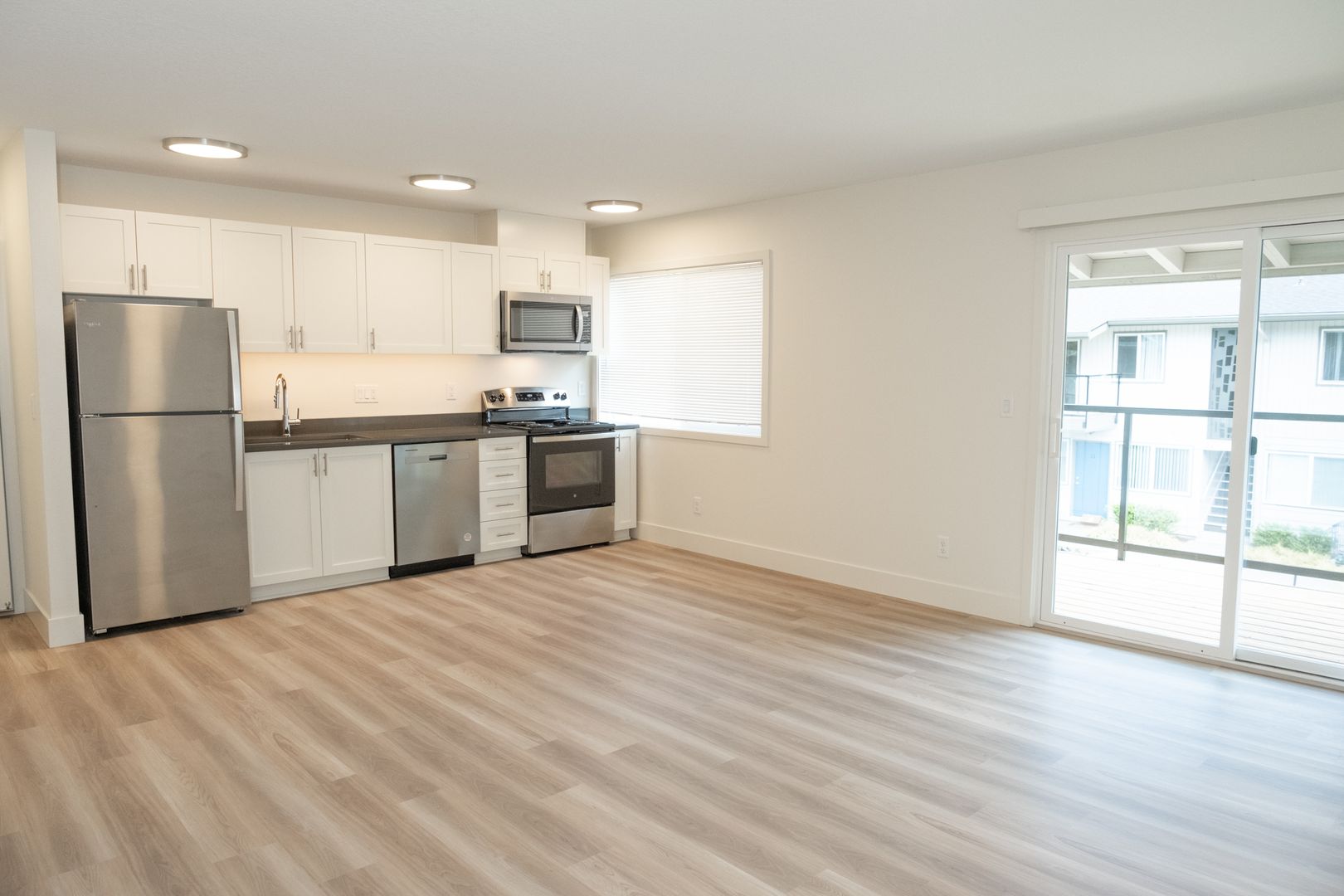 This renovated one bedroom apartment offers quartz countertops, stainless steel appliances, dishwasher, built-in microwave, LVT floors, updated cabinets and lighting and an open floor plan. It also offers its own private balcony to sit outside and enjoy the Lake Oswego views. The property offers a fitness center, garages with remote control opening, designated parking and onsite storage units.