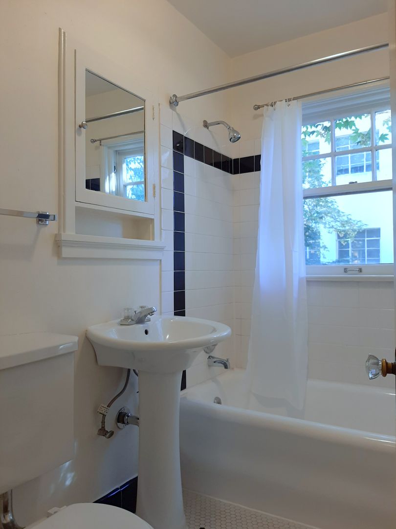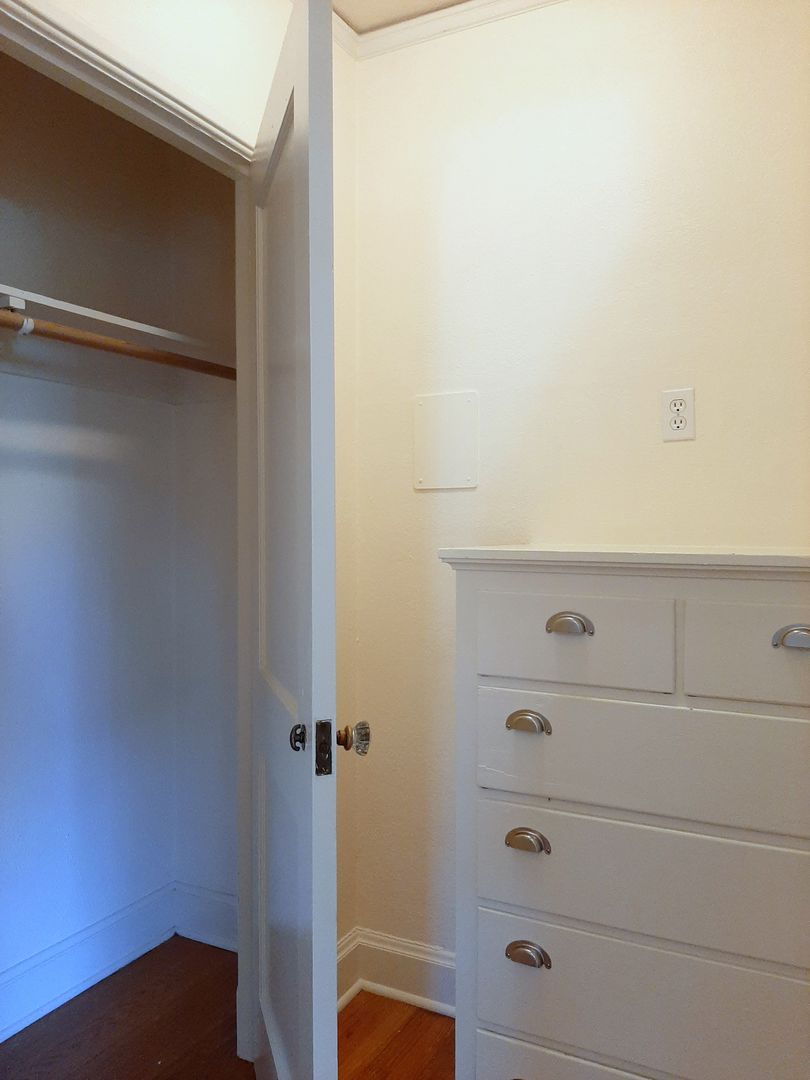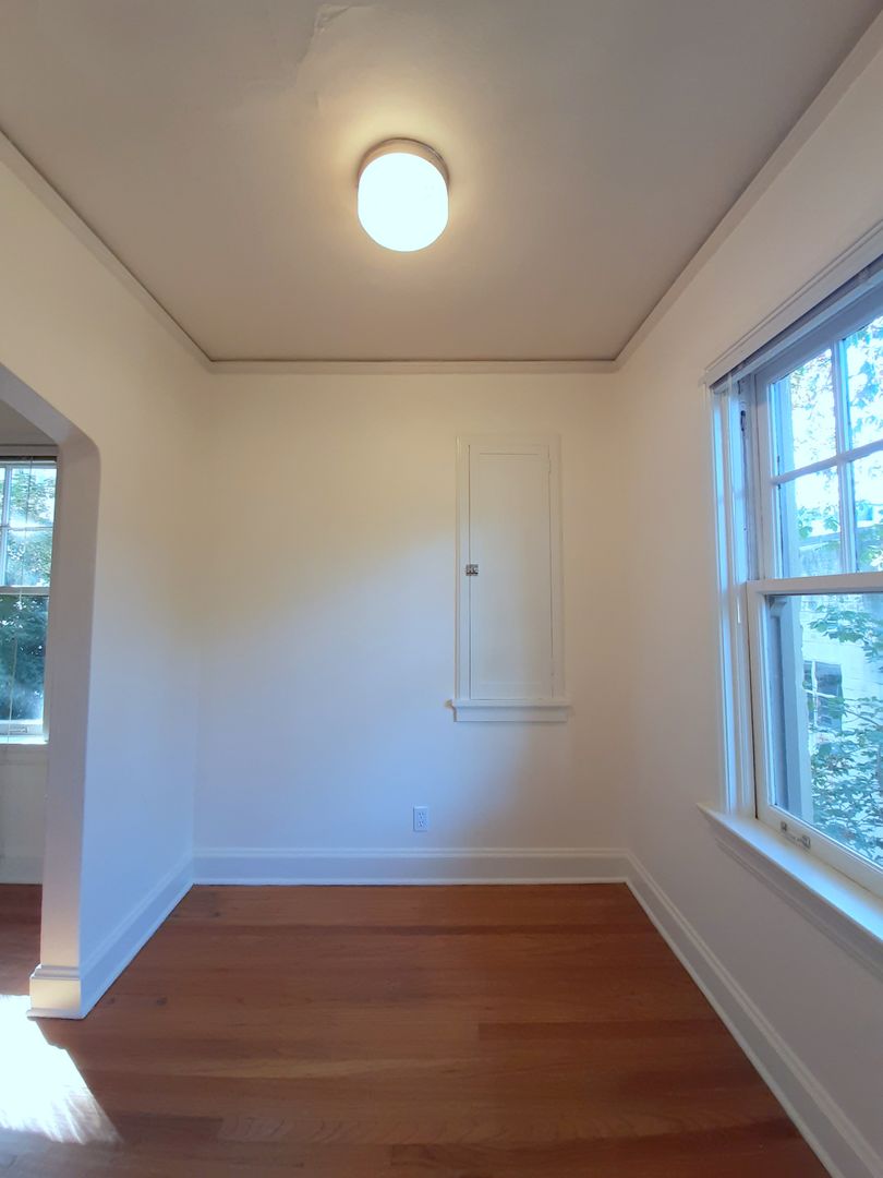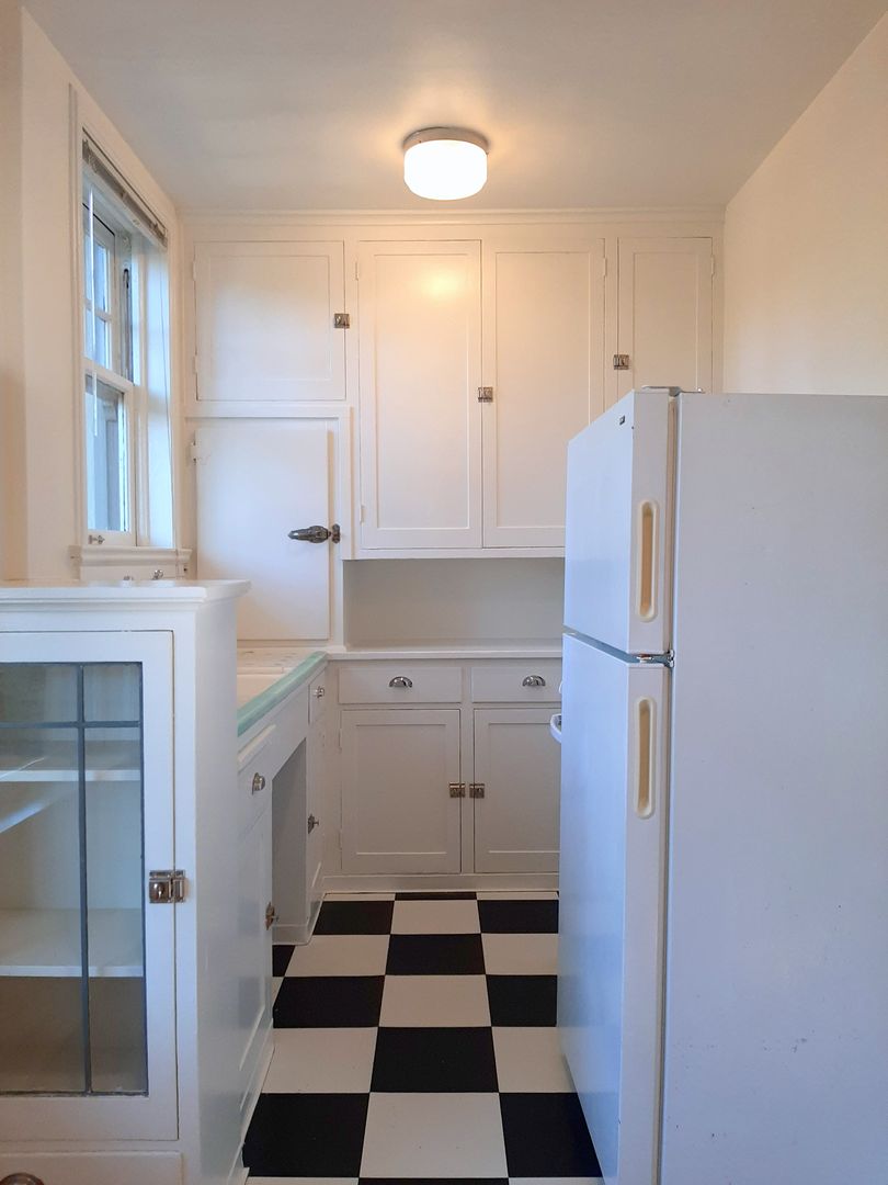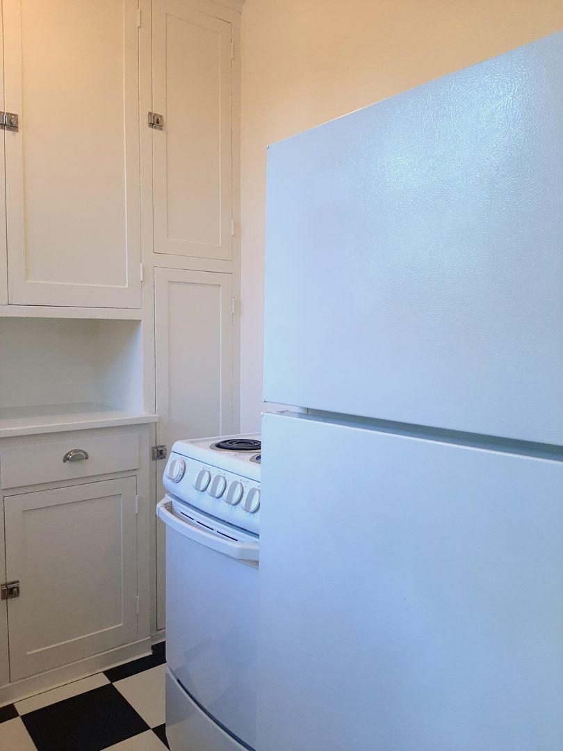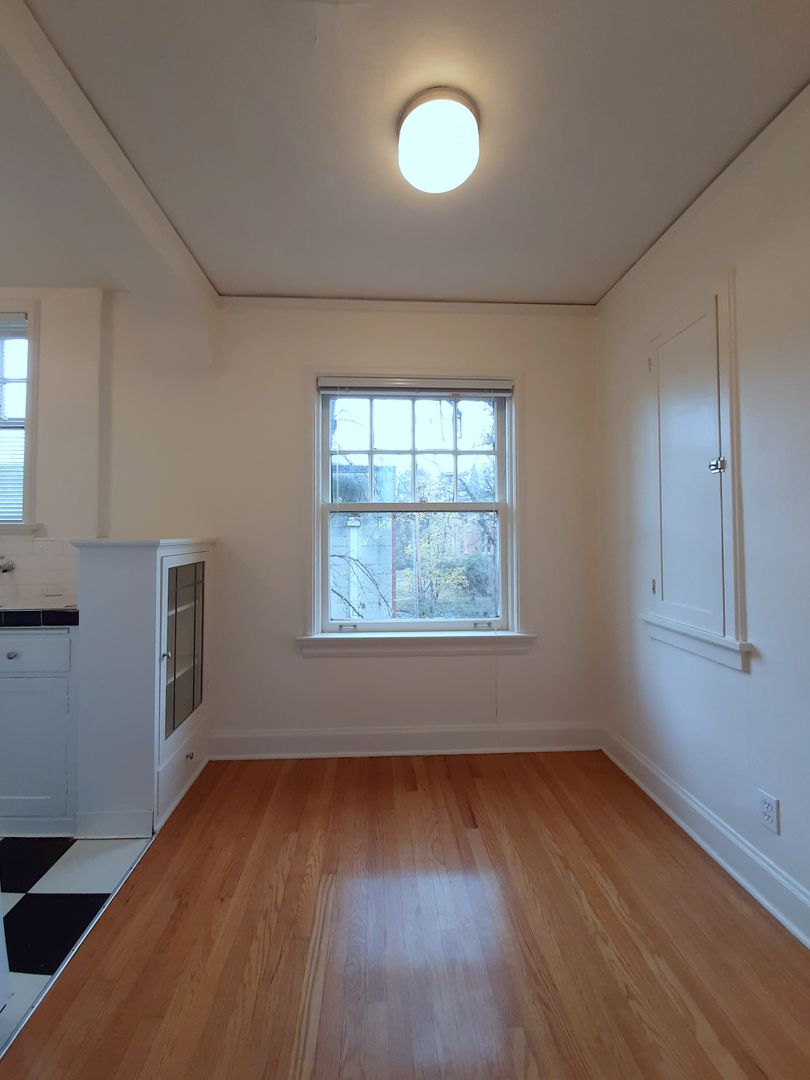 This beautifully preserved top floor studio offers timeless character and classic details throughout. Located on the top floor, the apartment features gleaming hardwood floors and a period-tiled kitchen with updated appliances. A cozy dining area is accented by a built-in glass-front china cabinet, perfect for added charm and function.
