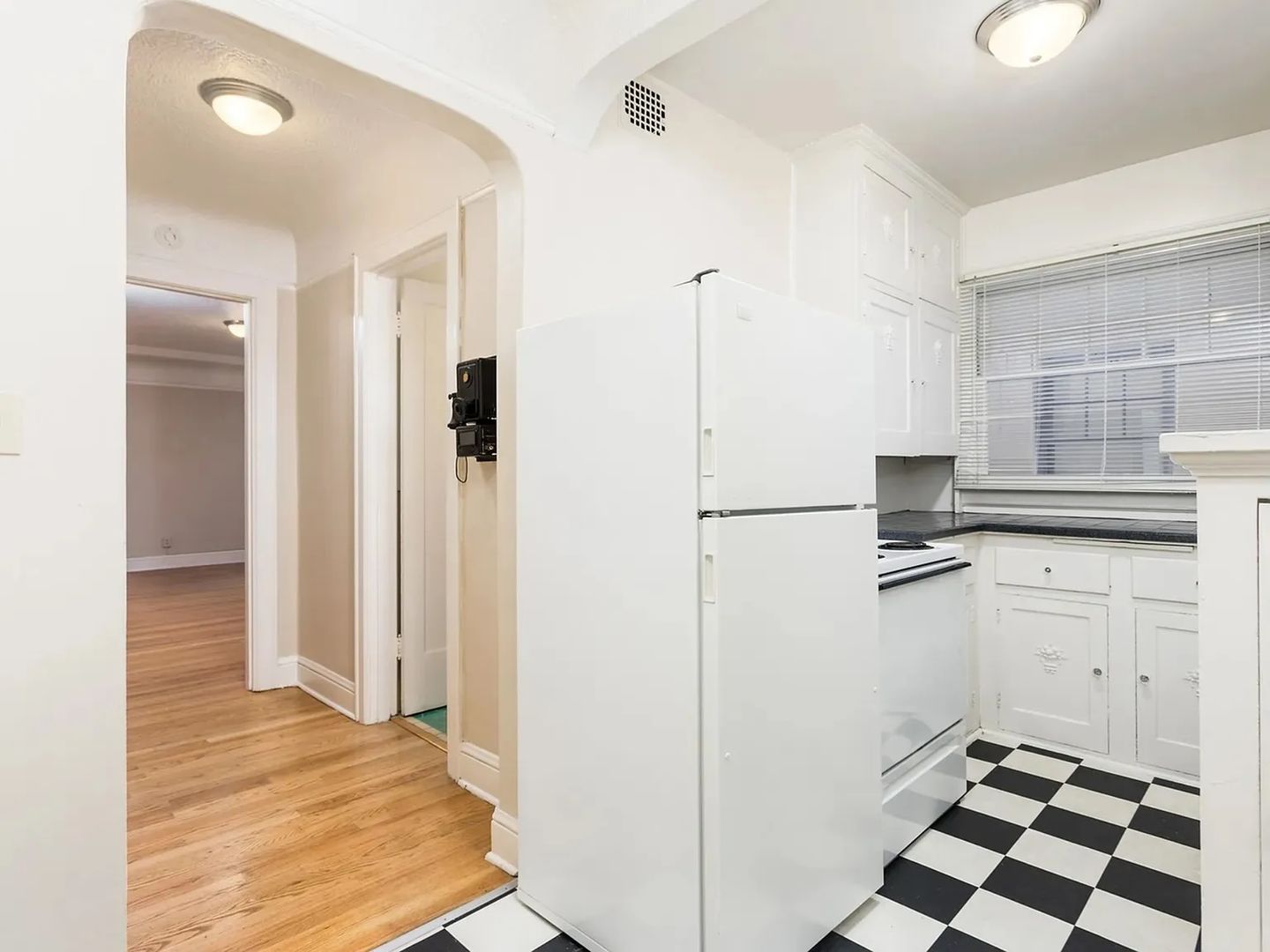 Discover this lovely one-bedroom residence that combines Art Deco beauty with modern living. Sunlight filters through large windows onto rich hardwood floors, highlighting the graceful details throughout. Thoughtful built-ins, a charming dining nook with leaded-glass accents, and vintage tilework bring character and craftsmanship to every corner.